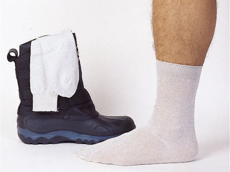 Metallic liners are the product of space age technology....reflecting body heat to increase warmth and comfort. They mean the end of ‘‘cold feet’’ for snowmobilers, cyclists, hunters, skiers, etc. Constructed of aluminized Lurex threads that provide the utmost in insulation protection. One size fits all.