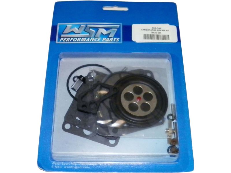 Kits include all necessary diaphragms, gaskets, and hardware required to disassemble and rebuild Mikuni BN34, BN38, BN44 and BN46 square pump and round pump watercraft carburetors