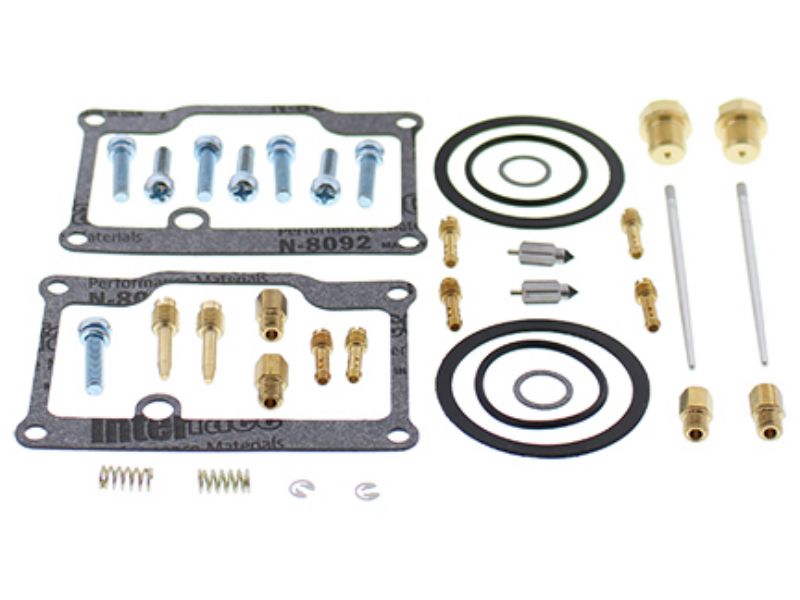 Kit includes necessary O-rings, gaskets, funnel gasket, jets, needle, mixture screw, float bowl screws, float valve needle and seat. (Needle jet and other pressed in jets are not included in kit)