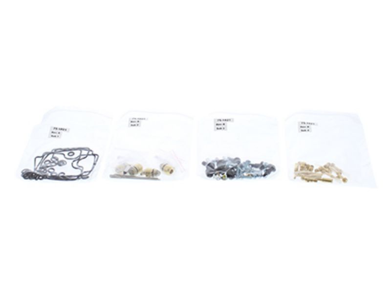 Kit includes necessary O-rings, gaskets, funnel gasket, jets, needle, mixture screw, float bowl screws, float valve needle and seat. (Needle jet and other pressed in jets are not included in kit)