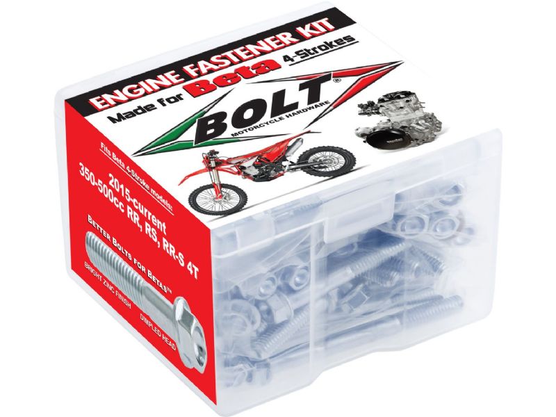 Four-Stroke Engine Fastener kits include bottom-end hardware for the following: Crankcase Covers, Clutch Cover, Oil Filter Cover, Crankcase, Case Saver, Water Pump and various top-end bolts depending on model
