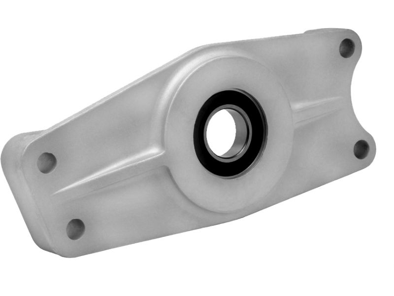 Supports the transmission main/shaft when the inner primary was discarded for an open belt. Our transmission main/shaft bearing support is cast from 356 T6 high strength aluminum with an automotive style sealed ball bearing to fully support the main/shaft with all the weight of the clutch basket and associated parts. Fits 1965-up Big Twin 4-Speeds w/rear chain only. Will not work with super nut. Must use stock main/shaft nut.