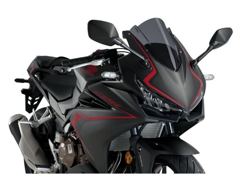 Racing - Double height windscreen that drives the air away from your helmet. For supersport bikes.