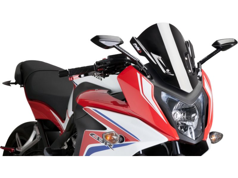 Racing - Double height windscreen that drives the air away from your helmet. For supersport bikes.