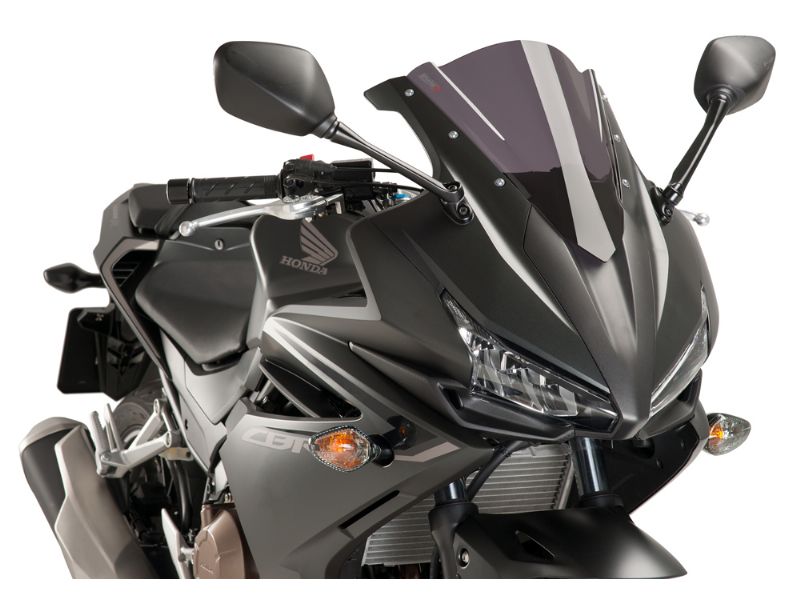 Racing - Double height windscreen that drives the air away from your helmet. For supersport bikes.