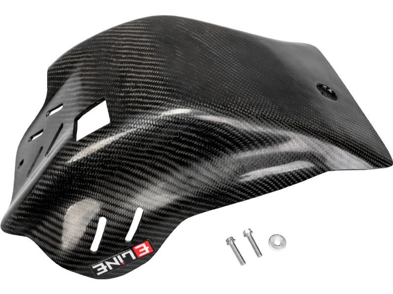 Our motorcycle skid plates are hand molded to the exact shape of the frame and engine which in turn offers much more protection from the constant pounding that occurs when riding off-road. We incorporate Kevlar into our carbon fiber skid plates because it has proven to be one of the most durable and lightweight materials on the market today. While the carbon fiber looks great, the Kevlar helps set E Line Accessories from the competition. Why carbon fiber? Because an aluminum skid plate cannot be molded perfectly to the shape of the bike. Also, metal is prone to dents and bending which can allow impacts to cause damage along the lower frame tubes. Plastic? Great idea, however plastic will allow frames to be bent on impact as well as never being formed to follow the engine and frame lines to eliminate mud build up. Over the years we have worked diligently to develop the perfect combination of carbon fiber. Kevlar and resin that makes our skid plates the most durable engine protection on the market today. All of the E Line Accessories skid plates require a separate mounting kit which includes all the necessary hardware to quickly and easily install on your favorite motorcycle. E Line Accessories incorporates Kevlar in the manufacturing process because it disperses impact forces and resists fatigue better than any other material used on motorcycle skid plates, including aluminum. If you are looking for the best dirt bike skid plate on the market, check out the E Line Accessories carbon fiber skid plates.