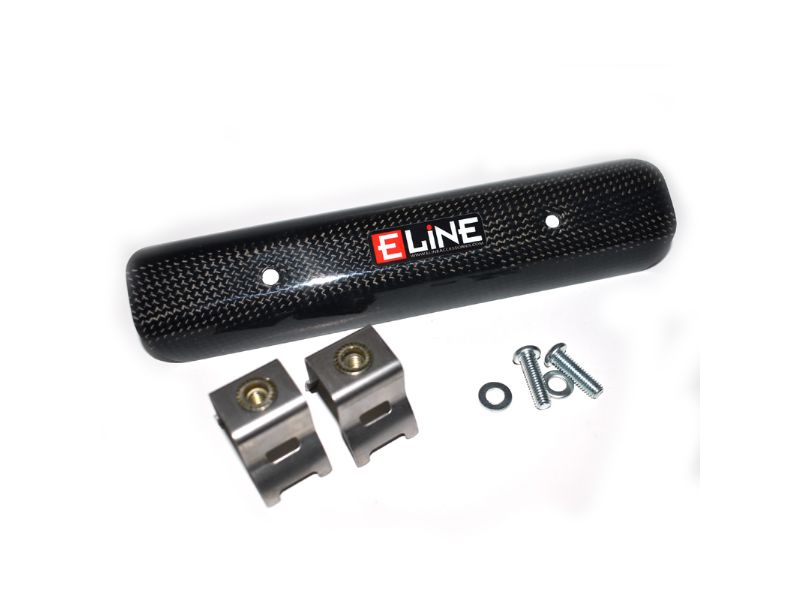 Whether you have an OEM or aftermarket exhaust system, the head pipe is susceptible to dings and dents as it gets hot so it is critical to protect it from potential impact damage. With temperatures exceeding 900-degrees Fahrenheit on most dirt bikes, your riding gear can be burnt quickly if it contacts an unprotected header, so before you sacrifice another pair of pants or boots, equip your bike with a carbon fiber exhaust heat shield and say goodbye to those burnt britches and boots. E Line Accessories dirt bike heat shields are designed to attach to the stock header bolt-on tabs so they are easy to install, but they do require a specific mounting kit that includes all the necessary hardware and instructions. Each kit features stainless steel mounting hardware that provides and exact fit that keeps the carbon heat shield the perfect distance away from the head pipe it is protecting. This type of attention to detail is part of what sets our components apart from the crowd.
