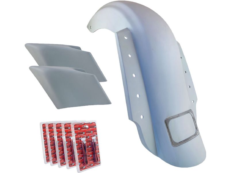 When it comes to saddlebags, Bagger Nation feels that stock is the new stretched! So much so that we’ve created a killer new line of 3-piece body kits aimed at setting your stock bike apart from the crowd. Each kit includes Bagger Nation’s all new 8” Swoop Stretched Fender and a pair of our Swoop Stretched Side Covers. Bagger Nation offers two kits, one for bikes equipped with standard length saddlebags and the other for factory Specials and CVO’s equipped with factory stretched saddlebags.