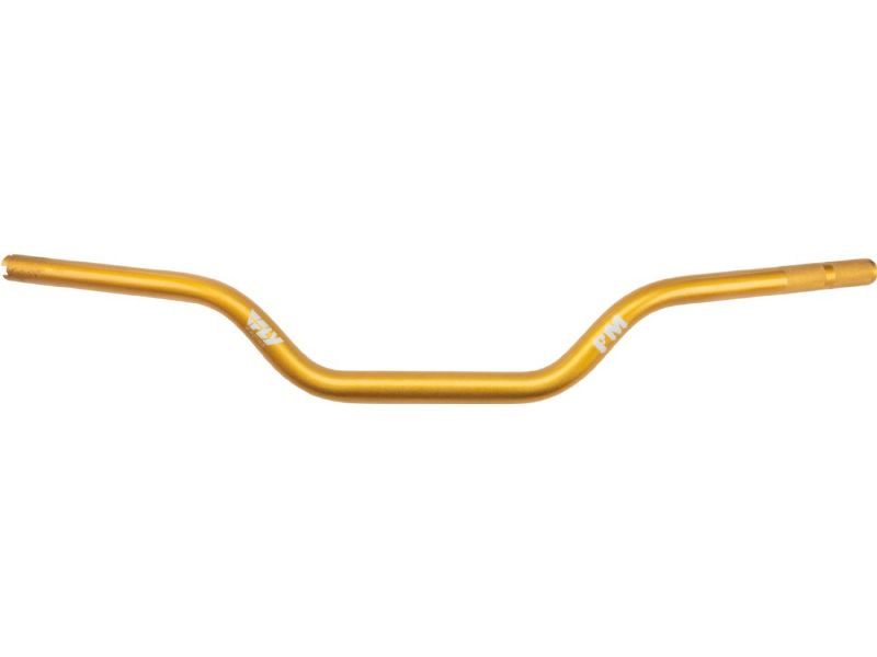 These moto style bars are designed by Forbidden Motorcycles and made by Fly Racing! They feature the moto typical 1-1/8" clamping area but taper down to 1" to accommodate stock Harley hand controls, eliminating the need to sleeve them. They are pre drilled for internal wiring, including the holes to run wires through the FM risers. Bars are 32" wide, pullback is 3" and rise is 2.5"