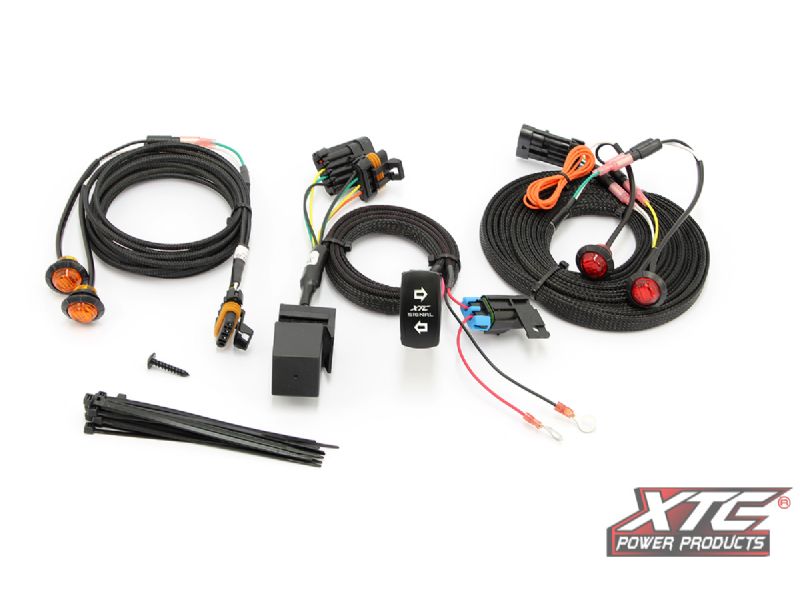 Integrates into the factory rear harness on most UTVs. The system comes with a marine switch that activates the Turn Signal System and indicates a flashing arrow. Model specific part numbers are easy to install with no wires to cut and no crimping. The system comes with pre-made wire harnesses that interface with the OEM harness. Just unplug the cars rear light harness and plug in our harness. It is that easy. The brake lights work as turn signals just like a car, including Hazard Lights. Since these vehicles are used primarily for off-road use, the lit dash switch is more practical over those cumbersome turn levers that break off. It includes a custom lit Hazard/Horn switch and rear power out for the license plate light or whip light. XTC Power Products, made in America.