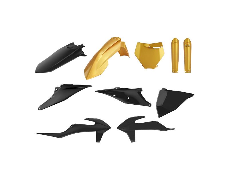 Kits include front and rear fenders, side panels, radiator shrouds, and # plate in factory OEM colors