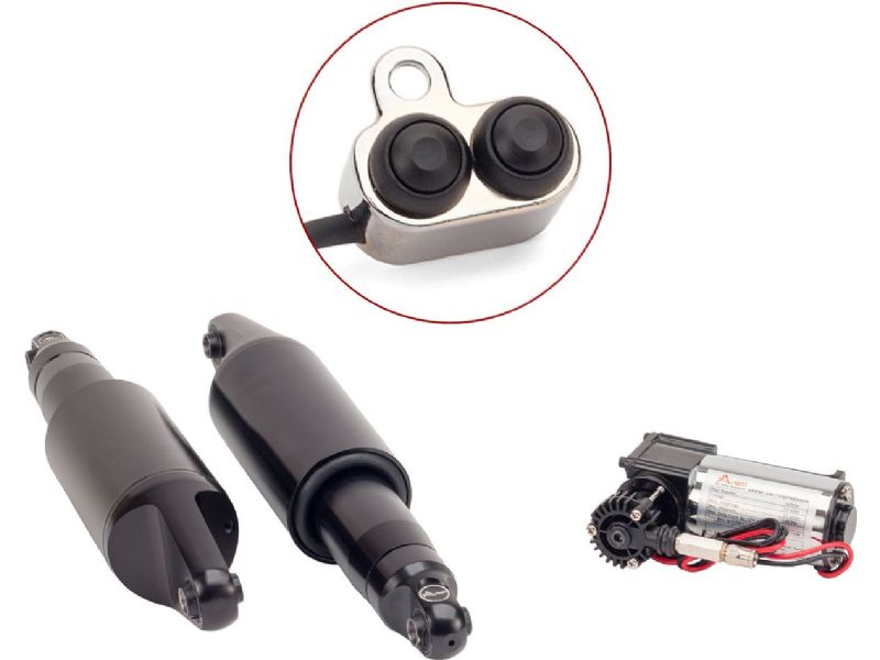 Arnott’s new Ultimate Ride Series Air Suspension Kit for Harley-Davidson® Tri Glide® and Freewheeler® has been custom designed to replace the OE shocks on these heavy 1,200 lb. three-wheelers. Arnott’s patents-pending kit features TruAIR® Technology with rugged Goodyear multi-ply air spring sleeves which are coupled with FOX® nitrogen-charged shock absorbers. Arnott’s Air Shock Kit provides the rider, and their passenger, with superior ride comfort regardless of the road ahead or any added weight on the Tri Glide and Freewheeler. Plus, Arnott’s extended shock length (14” vs. 13”) increases the ground clearance for your exhaust tips. This helps eliminate your pipes from scraping on the pavement which often occurs with stock shocks. Arnott pairs your shock with a powerful compressor, application-specific mounting bracket, and air distribution valve block which includes a muffler to control how fast air is released. Each kit includes everything you need for a fast and flawless installation including Installation Manual, fused wiring harness and relay assembly, black handlebar-mounted inflation switch, all necessary tubing, wiring, cable ties, fittings, and mounting accessories. Each shock kit is custom-crafted and rigorously tested in Arnott’s Florida manufacturing facility and is backed by Arnott’s Limited Lifetime Warranty.