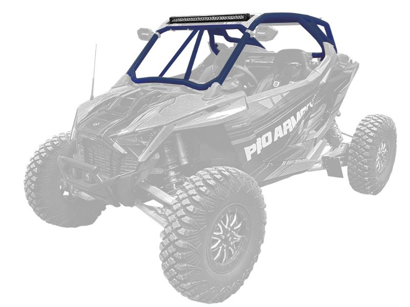 RZR Turbo R Cage System available with V or no intrusion bar. This cage completely changes the lines of your Polaris RZR Turbo R. Made of 1.75" & 2" DOM steel tubing and MIG welded. Easy install with no drilling necessary and comes with all necessary hardware. We also offer a matching aluminum roof with or without a light pocket.