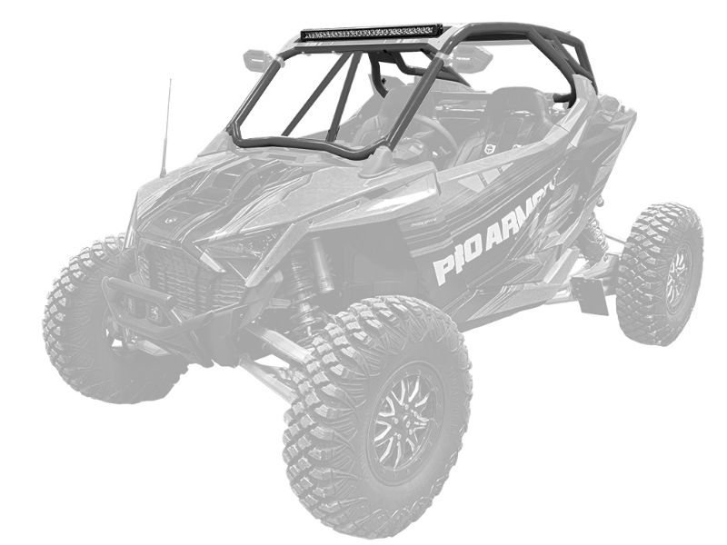RZR Turbo R Cage System available with V or no intrusion bar. This cage completely changes the lines of your Polaris RZR Turbo R. Made of 1.75" & 2" DOM steel tubing and MIG welded. Easy install with no drilling necessary and comes with all necessary hardware. We also offer a matching aluminum roof with or without a light pocket.