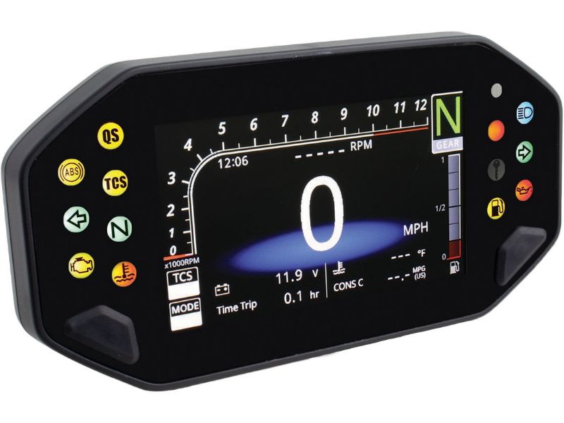 - speedometer, tachometer, odometer, tripmeter, hour meter, voltage, clock, and stopwatch, as well as six indicator lights and several other features.