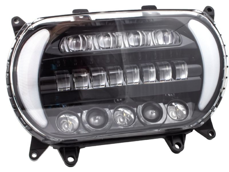 The Sharktooth™ LED Road Glide Headlight with integrated Switchback™ turn signals add some light with a mixture of black and chrome to give you a custom. Switchback™ integrated turn signals function as white running lights then switch to (bright) amber turn signals to off when turn signal switch is activated.