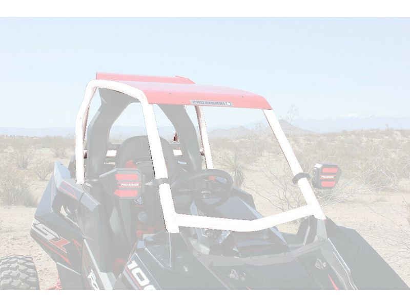 The Pro Armor RS1 cage system has been designed to completely change the lines of your Polaris RZR RS1 single seater. This sleek streamlined cage has a lower profile than the stock Polaris RS1 cage, is made of 1.75 DOM steel tubing and is MIG welded to further add strength to the design. Each cage comes with three whip mounts, right, left and center so you can make that decision to run whatever whip combo you like. Each cage is easy to install with no drilling required. We also offer a matching aluminum roof for your Polaris RS1. Available in Black, Red, White. This is a direct replacement to factory cage.