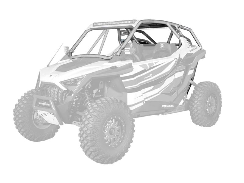 RZR Pro XP Cage System available with V or no intrusion bar. This cage completely changes the lines of your Polaris RZR Pro XP. Made of 1.75" & 2" DOM steel tubing and MIG welded. Easy install with no drilling necessary and comes with all necessary hardware. Matching aluminum roof with or without a light pocket also available.