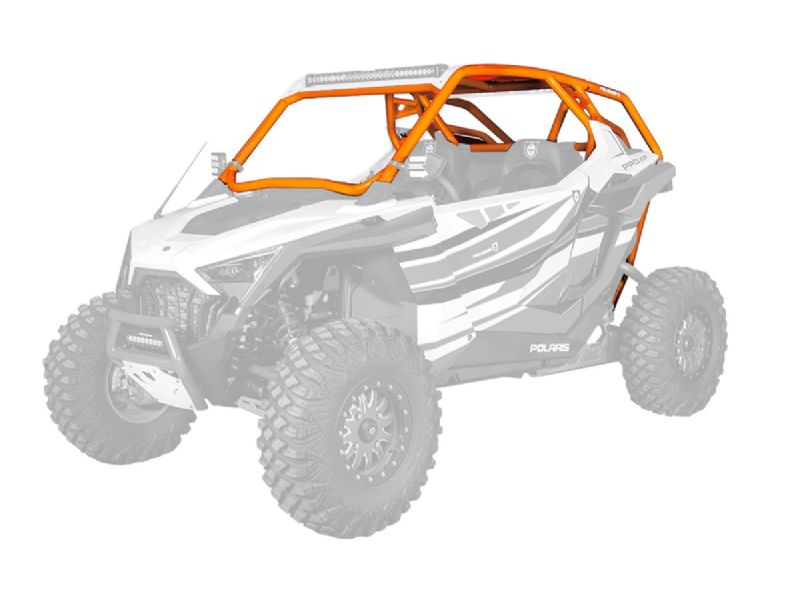 RZR Pro XP Cage System available with V or no intrusion bar. This cage completely changes the lines of your Polaris RZR Pro XP. Made of 1.75" & 2" DOM steel tubing and MIG welded. Easy install with no drilling necessary and comes with all necessary hardware. Matching aluminum roof with or without a light pocket also available.