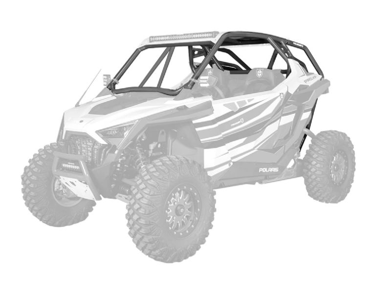 RZR Pro XP Cage System available with V or no intrusion bar. This cage completely changes the lines of your Polaris RZR Pro XP. Made of 1.75" & 2" DOM steel tubing and MIG welded. Easy install with no drilling necessary and comes with all necessary hardware. Matching aluminum roof with or without a light pocket also available.