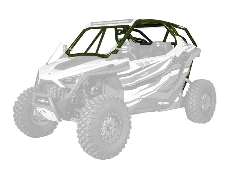 RZR Pro XP Cage System available with V or no intrusion bar. This cage completely changes the lines of your Polaris RZR Pro XP. Made of 1.75" & 2" DOM steel tubing and MIG welded. Easy install with no drilling necessary and comes with all necessary hardware. Matching aluminum roof with or without a light pocket also available.