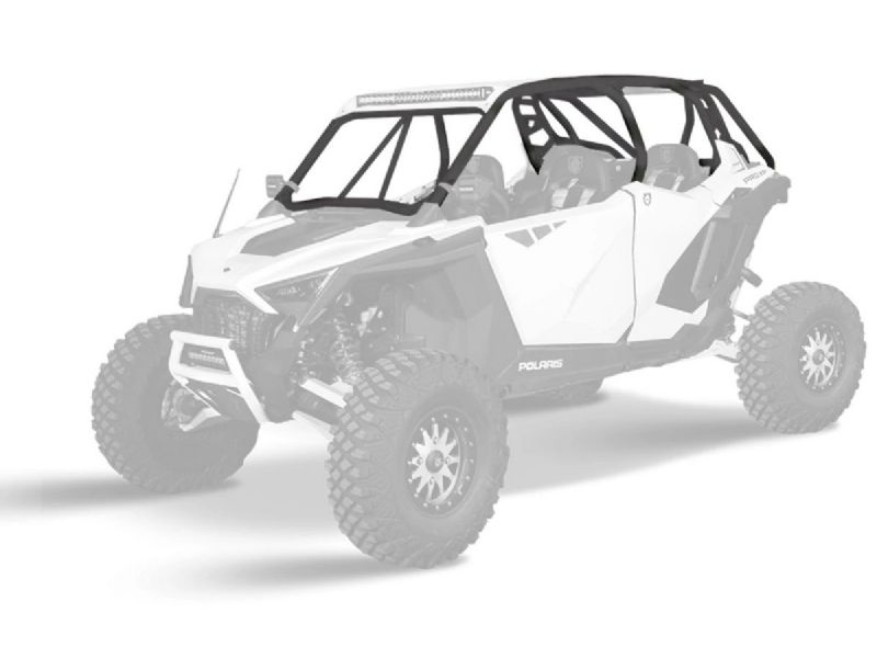 RZR Pro XP Cage System available with V or no intrusion bar. This cage completely changes the lines of your Polaris RZR Pro XP. Made of 1.75" & 2" DOM steel tubing and MIG welded. Easy install with no drilling necessary and comes with all necessary hardware. Matching aluminum roof with or without a light pocket also available.