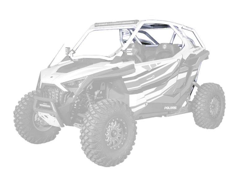 RZR Pro XP Cage System available with V or no intrusion bar. This cage completely changes the lines of your Polaris RZR Pro XP. Made of 1.75" & 2" DOM steel tubing and MIG welded. Easy install with no drilling necessary and comes with all necessary hardware. Matching aluminum roof with or without a light pocket also available.
