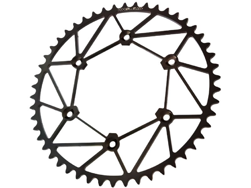 The Dirt Tricks Rear Sprocket was designed and patented by Dirt Tricks president and engineer Greg Burns in 2002, using his knowledge of aerospace steels, heat treatments, as well as FEA stress analysis