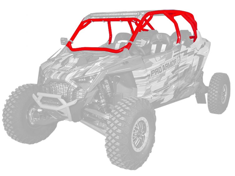 RZR Pro R Cage System available with V or no intrusion bar. This cage completely changes the lines of your Polaris RZR Pro R Made of 1.75" & 2" DOM steel tubing and MIG welded. Easy install with no drilling necessary and comes with all necessary hardware. We also offer a matching aluminum roof with or without a light pocket.