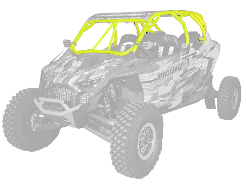 RZR Pro R Cage System available with V or no intrusion bar. This cage completely changes the lines of your Polaris RZR Pro R Made of 1.75" & 2" DOM steel tubing and MIG welded. Easy install with no drilling necessary and comes with all necessary hardware. We also offer a matching aluminum roof with or without a light pocket.