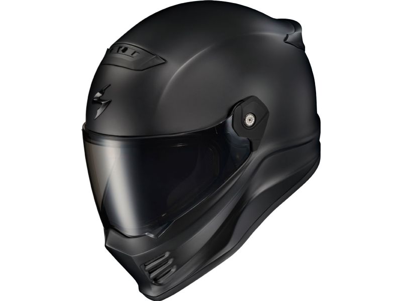 The Creators of the original bad-ass Covert Motorcycle Helmet has now developed a full-face version, the Covert FX! The Covert FX displays the same edgy style and function that is expected from the ScorpionEXO® Covert Series. However stylish the details may be, they have important function. Each helmet is carefully hand crafted using the latest Fiberglass, Aramid and Polyresin fibers which provide superior strength and extreme light weight. The low-profile shell has been aerodynamically tuned for motorcycle riding, minimizing both lift and turbulence for a smoother, quieter, and more stable ride. Integrated speaker pockets make it easy to install your favorite Bluetooth® communication device, while the KwikWick-C comfort Liner features a moisture wicking material that will keep you cool, dry and comfortable during your ride. ScorpionEXO® continues to set the standard when it comes to Value in a motorcycle helmet by including a Free Dark Smoke Shield, as well as a Clear shield, right out of the box. If you’re looking for a Stylish and Functional motorcycle helmet that’s perfect for both city commutes and long-distance touring, look no further than the Covert FX.