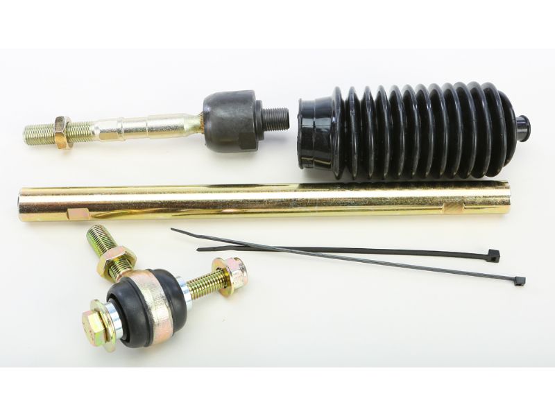 Rack kit contains tie rod end and shaft that connects to the steering rack as well as the outer tie rod end, boot and the required hardware for one side.