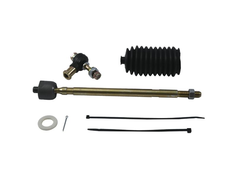 Rack kit contains tie rod end and shaft that connects to the steering rack as well as the outer tie rod end, boot and the required hardware for one side.