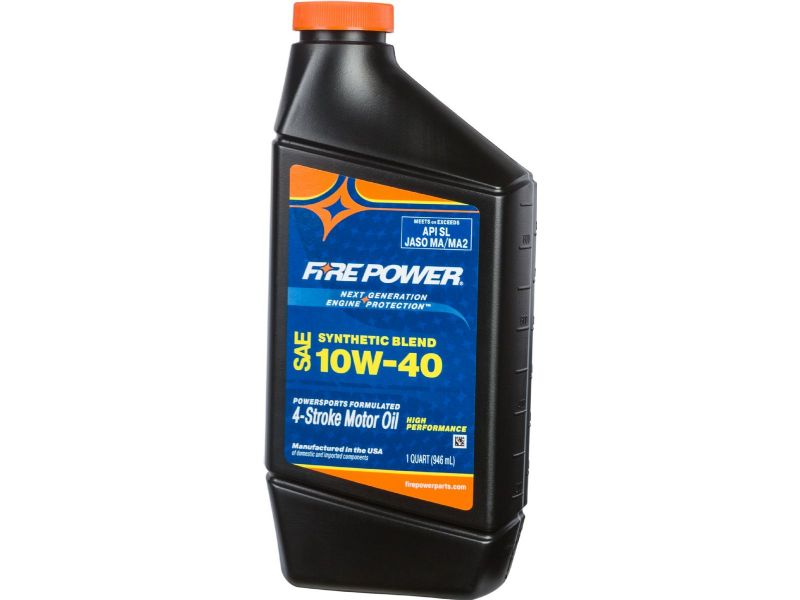 Fire Power motor oils are specifically engineered for use in modern powersport applications. Developed by a leading OEM engine oil manufacturer, Fire Power motor oils have proven durability in both laboratory and controlled engine dyno testing. Powersport formulated with high-strength viscosity modifiers for excellent shear stability, strength and engine protection. Meets API SL and JASO MA/MA2 specifications. Meets warranty specification for Honda, Kawasaki, Suzuki, Yamaha and other major Japanese motorcycle manufacturers.