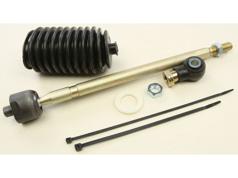 Rack kit contains tie rod end and shaft that connects to the steering rack as well as the outer tie rod end, boot and the required hardware for one side.