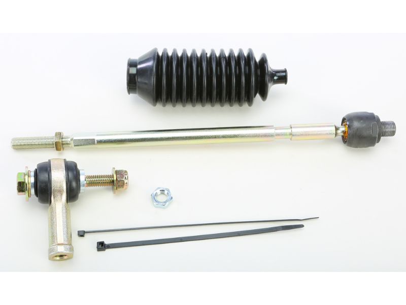 Rack kit contains tie rod end and shaft that connects to the steering rack as well as the outer tie rod end, boot and the required hardware for one side.