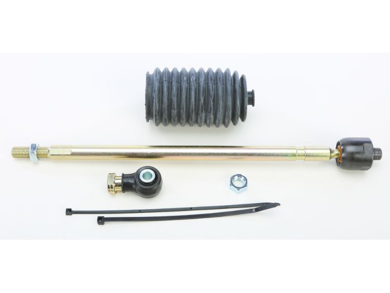 Rack kit contains tie rod end and shaft that connects to the steering rack as well as the outer tie rod end, boot and the required hardware for one side.