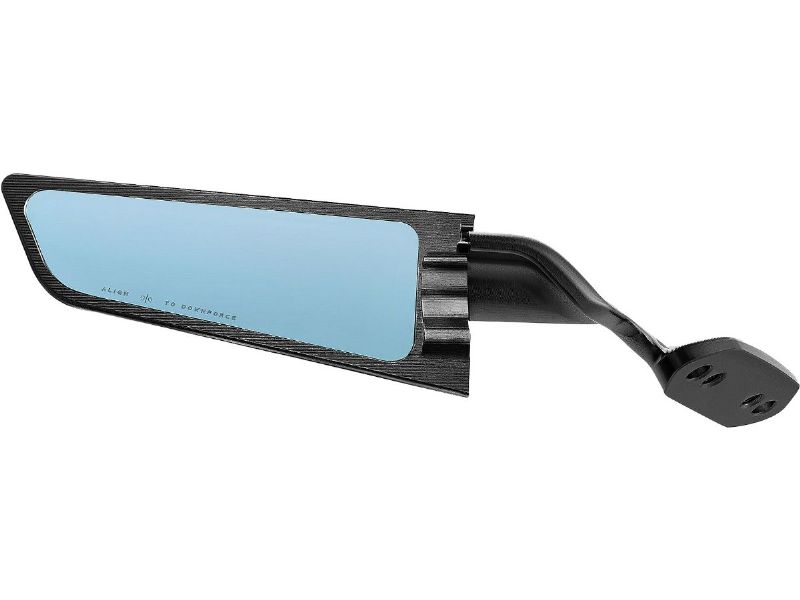 Thanks to a rotating system, by a simple movement, the two parts are aligned in a closed position and the mirror becomes an aerodynamic foil