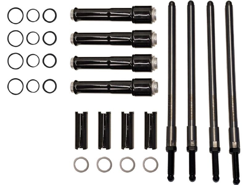 Includes all components required to convert a stock height engine to Rocket Cams® Speedy adjustable pushrods with Black Pushrod Covers, O-rings and Black Cover keepers.