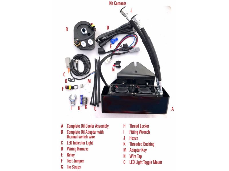 - Oil Adapter and Thermal Switch with waterproof connectors automatically turns on the powerful dual fans when your oil reaches 210 degrees and they stay on until the oil is cooled to 185 degrees.