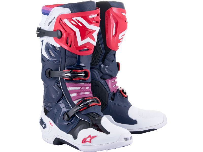 The benchmark boot in Motocross, the Tech 10 Supervented boot further advances the innovations that make it the most technical motocross boot ever. Featuring two inlet ports on the front, a ventilated shinplate, perforated padding and extensive mesh sections, the Tech 10 Supervented has been designed for maximum airflow through the boot’s front and effective heat exchange. The new mesh inner bootie boasts a 3D Higher Spring insole which uses air channels within the sole for optimal levels of ventilation, while also creating a cushioning effect for enhanced levels of comfort. There is also a new sole with an extended honeycomb design for superior grip and feel on the bike’s pegs, especially in wet and muddy conditions.