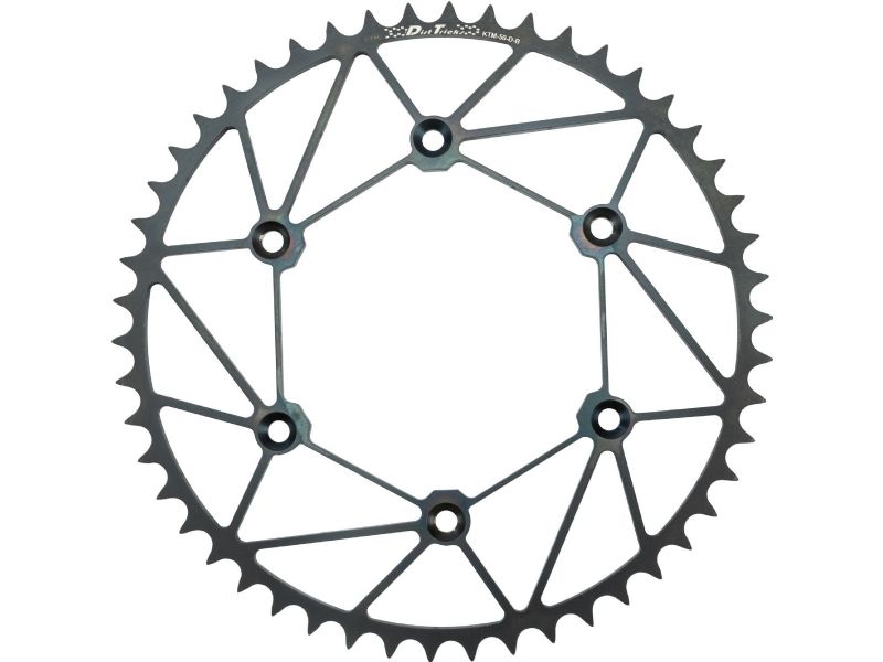 4. Our new Dirt Tricks Zirconium Rear Sprockets are lighter than the twin metal designs available, and the new coating on these sprockets reduces friction up to 50%, increases durability, and looks TRICK!