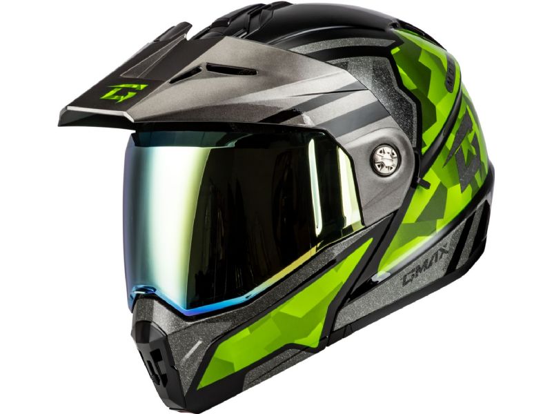 MD-74 STRIKER MODULAR HELMET W GLD SHLD BLK/SLVR/GRN MTLC LG