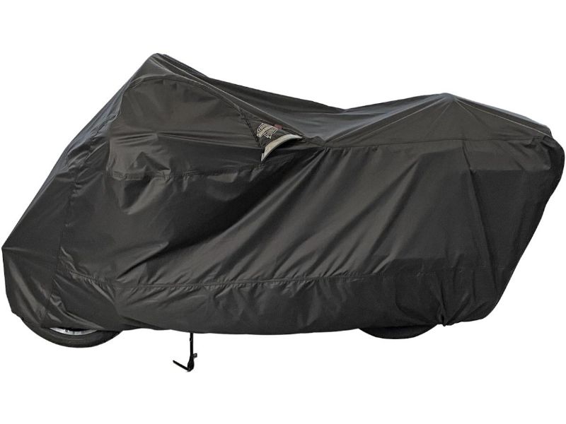 Reflective Moisture-Guard vent system prevents moisture under the motorcycle cover, with soft cotton lining in windshield area to deter scratching. Interior cotton heat shield lining to insulate areas near warm pipes
