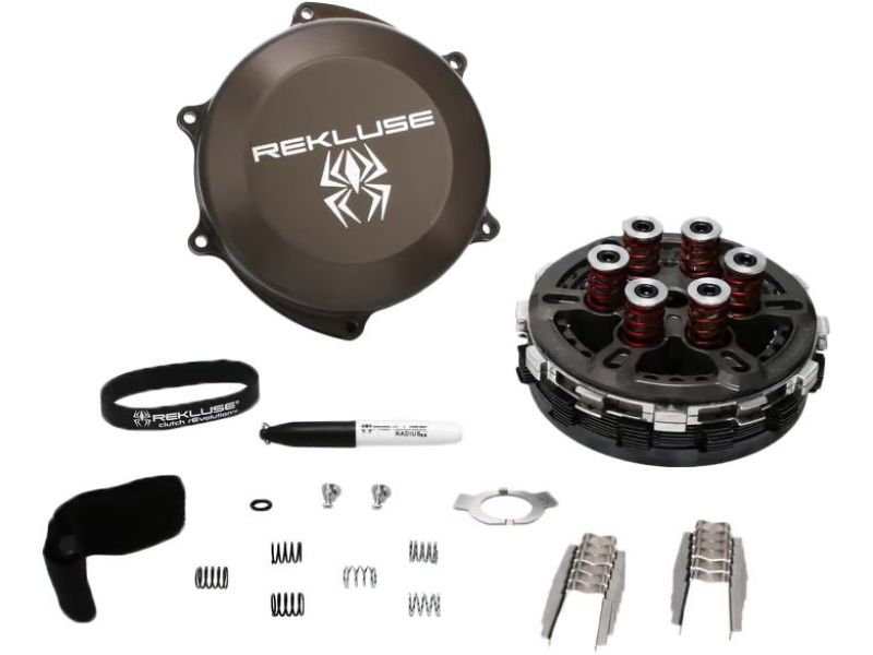 The base material used for EXP 4.0 has been updated to provide better strength in high temperature environments, critical for the heat clutch systems create. Next, the internal wall of the EXP 4.0 bases were redesigned for strength and rigidity, which helps translate to a more connected lever feel for the rider. On the outside of the EXP disk, riders will notice the friction pads now match the proprietary friction design found on Rekluse TorqDrive clutch plates. Applying this friction pad design helps match oil flow characteristics of the clutch pack beneath, promoting improved cooling capability and consistent operation. The ‘wedges’ are a critical component to the centrifugal functionality of EXP 4.0. In the previous iteration, the Teflon wedges would slide up and down ramps built into the EXP bases to engage and disengage the clutch. EXP 4.0’s wedge has been improved to now use rolling contact with built-in pins. Rolling versus sliding creates less friction and resistance, providing smoother engagement and a more responsive feel, creating stronger power delivery overall. New roller design reduces the friction coefficient by 98% When you need the best, look no further than RadiusCX it is the top of the line auto clutch product that brings together all of our latest technology into one package. TorqDrive friction disk technology coupled with the new EXP 4.0 and our Core technology results in significant advancement in auto performance with exceptional hook-up, lever feel and durability. Just when you thought auto couldn’t get better, RadiusCX 4.0 has raised the bar.