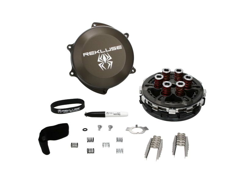 The base material used for EXP 4.0 has been updated to provide better strength in high temperature environments, critical for the heat clutch systems create. Next, the internal wall of the EXP 4.0 bases were redesigned for strength and rigidity, which helps translate to a more connected lever feel for the rider. On the outside of the EXP disk, riders will notice the friction pads now match the proprietary friction design found on Rekluse TorqDrive clutch plates. Applying this friction pad design helps match oil flow characteristics of the clutch pack beneath, promoting improved cooling capability and consistent operation. The ‘wedges’ are a critical component to the centrifugal functionality of EXP 4.0. In the previous iteration, the Teflon wedges would slide up and down ramps built into the EXP bases to engage and disengage the clutch. EXP 4.0’s wedge has been improved to now use rolling contact with built-in pins. Rolling versus sliding creates less friction and resistance, providing smoother engagement and a more responsive feel, creating stronger power delivery overall. New roller design reduces the friction coefficient by 98% When you need the best, look no further than RadiusCX it is the top of the line auto clutch product that brings together all of our latest technology into one package. TorqDrive friction disk technology coupled with the new EXP 4.0 and our Core technology results in significant advancement in auto performance with exceptional hook-up, lever feel and durability. Just when you thought auto couldn’t get better, RadiusCX 4.0 has raised the bar.