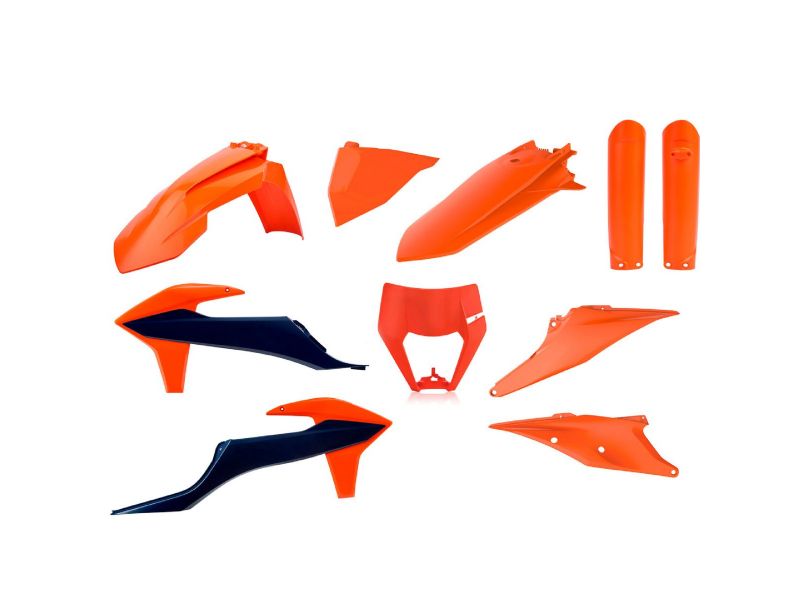 Kits include front and rear fenders, side panels, radiator shrouds, and # plate in factory OEM colors