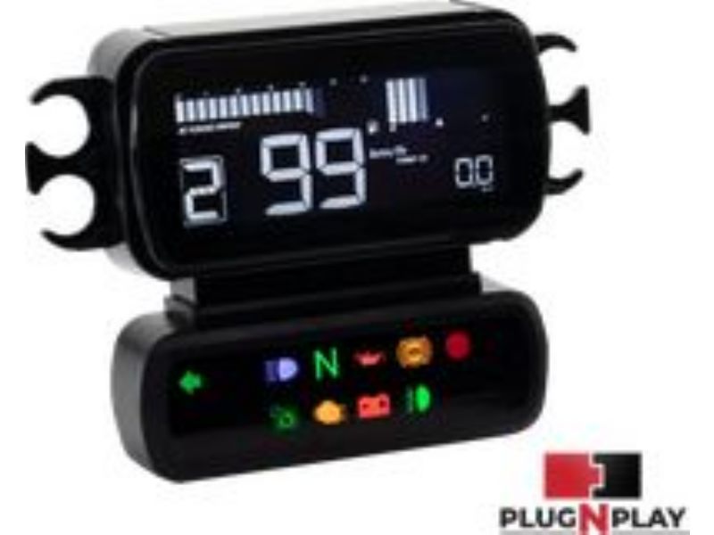 This gauge is capable of displaying vital readings such as engine temperature, battery voltage, tire pressure and a complete system of indicator lights to monitor your bikes vital signs.