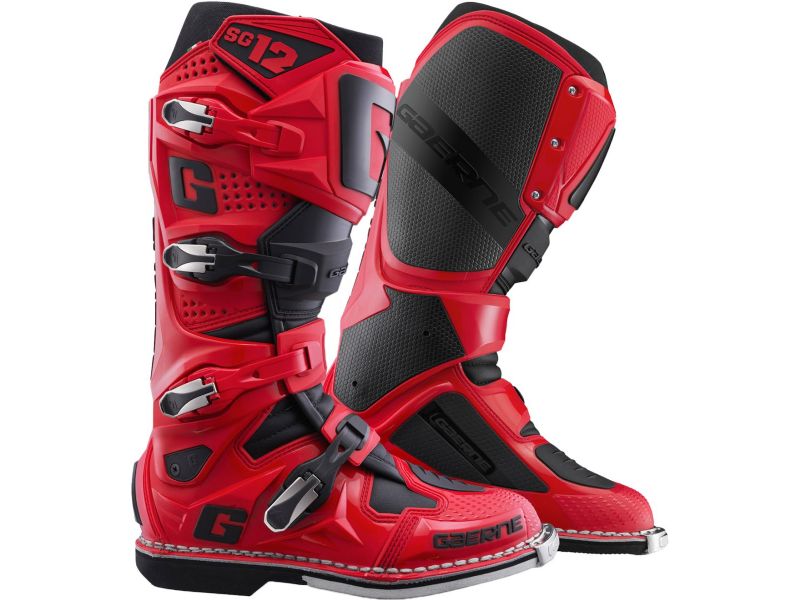 Choices create champions, but support is what keeps them at the top, which is why the SG-12 boot is the choice for riders who aspire to rise above the competition. From box to bike with minimal break-in, Gaerne’s SG-12 boots are made in Italy by practiced hands that step-by-step layer support, security, and comfort into each boot. The premium SG-12 offers a streamlined toe box for precision control, a dual-stage pivot system for more aggressive riders, an anti-shock composite sole for better connection to the pegs, slimline inner grip guard panels for better control and grip of the bike, memory foam interior for a customized fit, and an adjustable shin plate for more room around the calves. Our buckle system makes it easy to get in and get going, so a rider can focus less on gear and more on the ride.