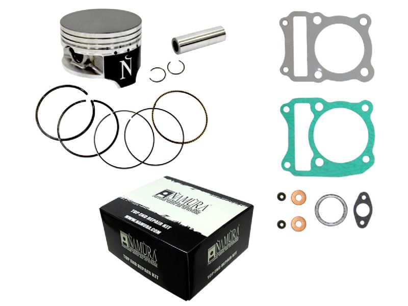 Top End kit includes: piston, rings, wrist pin, clips, top end bearing, and gasket kit